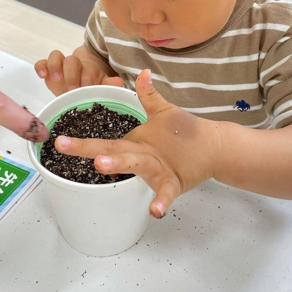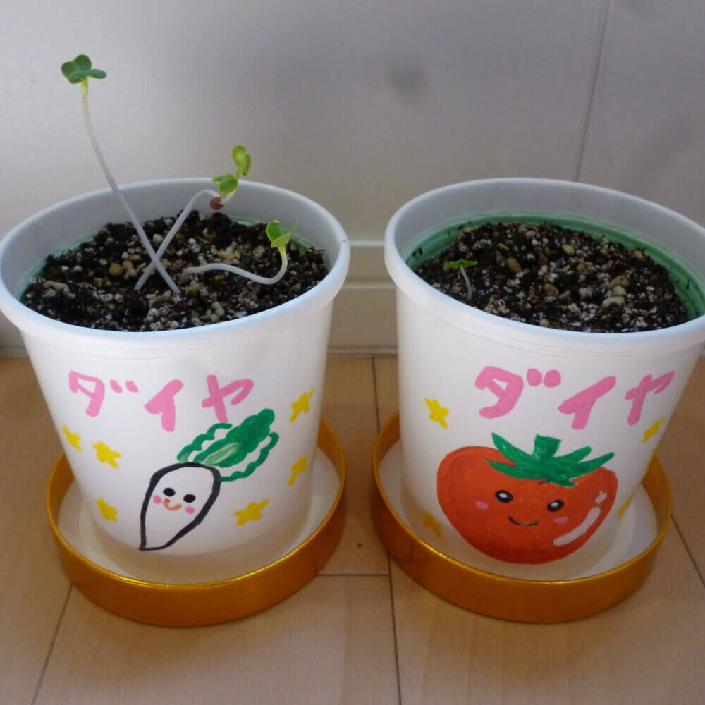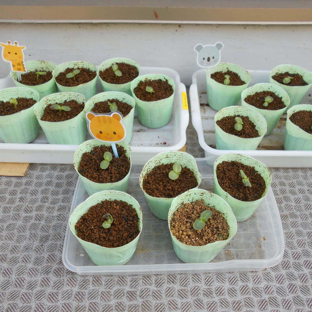 すくすく栽培セットには2回分の種が入っているため、残りの種を使って再挑戦している園もあります。