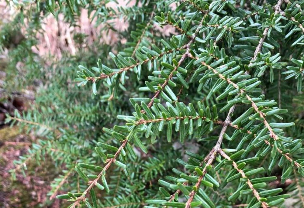 ツガの葉は針状でツヤがあり美しいのが特徴で、葉の裏には白い気孔線が入ることから、葉の裏が白く見えることがあります。