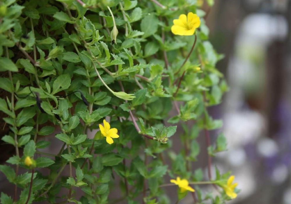花の色は黄色がメインでまれに白いメカルドニアもありますが、あまり流通はしません。花付きはそこまでよくありませんが、寄せ植えにも使いやすく人気があります。