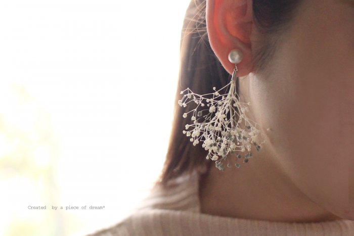 今度はかすみ草のピアスの作り方をご紹介します。髪飾りと同じくらい簡単なので、ぜひ挑戦してみてください♪