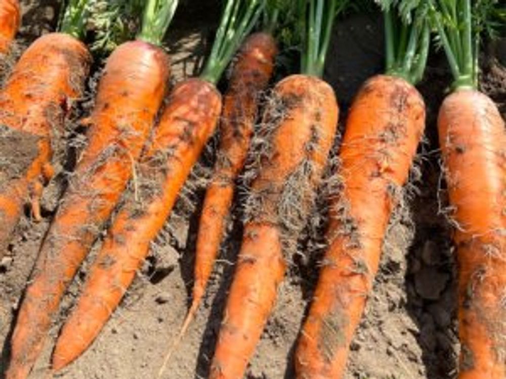 セリ科のニンジンは、アフガニスタンが原産の緑黄色野菜です。種まきは春まきと秋まきがあり、ニンジンの根の太さが5cmほどに生長したら収穫のタイミングといえます。