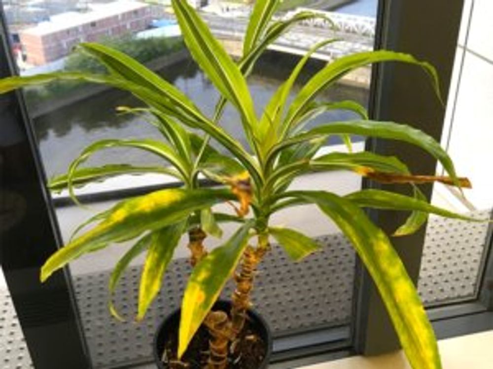 また、ドラセナ・アングスティフォリアは炭疽(たんそ)病などの病気にもかかりやすいため、日頃から風通しのよい場所で管理しましょう。炭疽病に感染すると葉の表面に斑点ができて穴が空いてしまうので、見つけ次第感染した葉を切り取ってください。