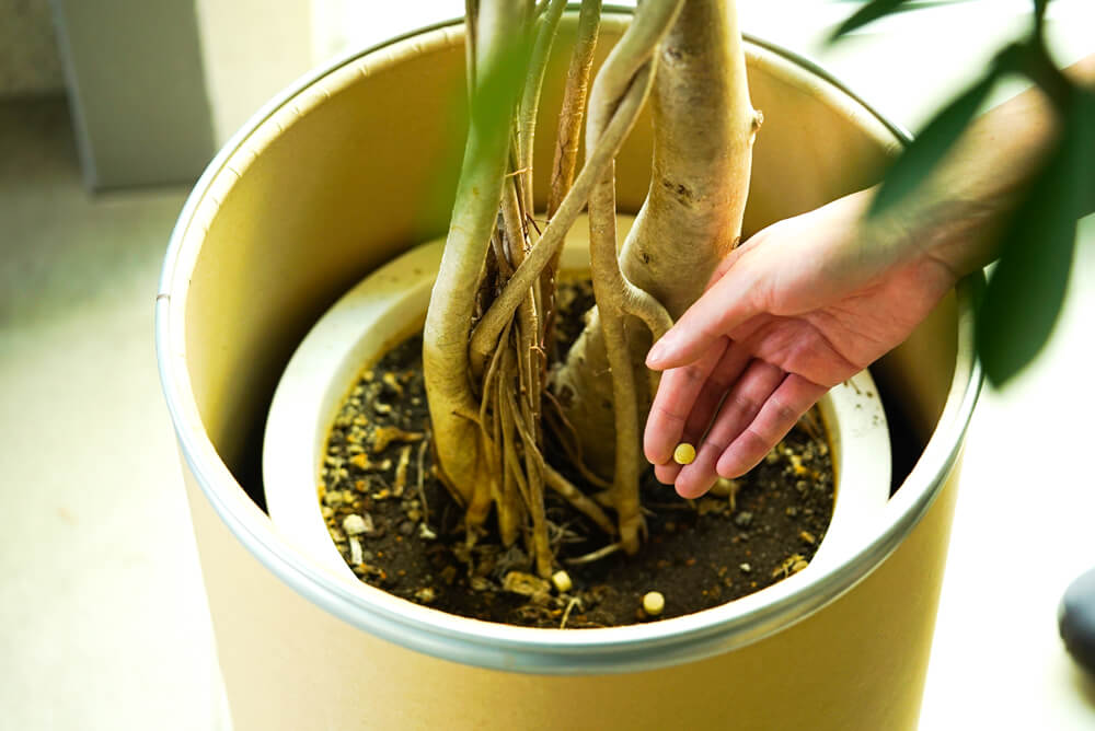 いやなニオイもなく清潔!「長く丈夫に育てるタブレット」は、鉢に置くだけで水やりのたびに肥料分が溶け出し、植物の元気を保ち、葉を大きく育てるタブレット肥料。手も汚さず手軽に使えて簡単です。