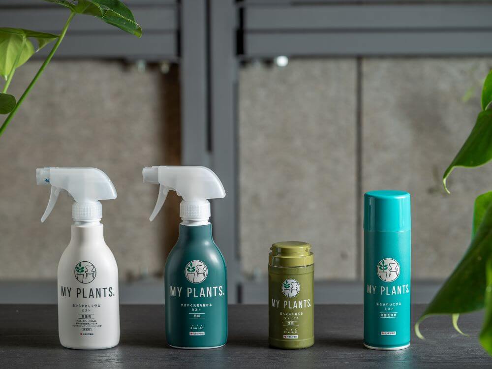 「MY PLANTS®」シリーズはスプレータイプの肥料とタブレット肥料、さらにスプレータイプの殺虫剤、葉をキレイにする葉面洗浄剤の4種類。シーンに合わせて使い分けられるよう、それぞれ常備しておくといいですね!