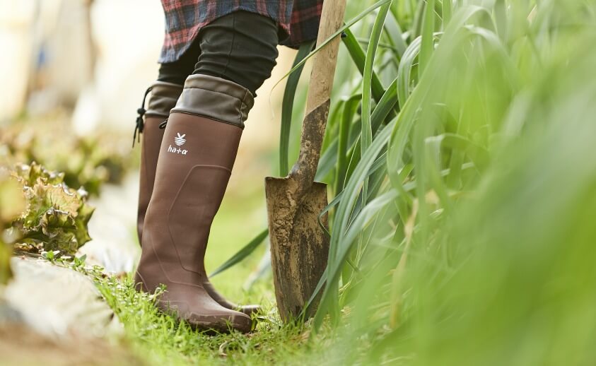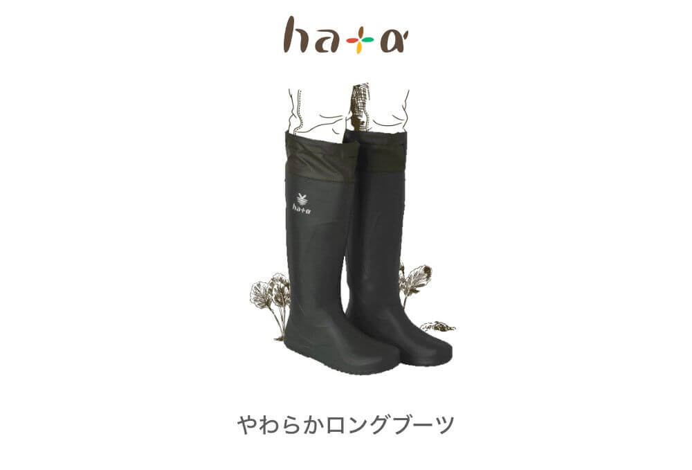 菜園ファッションブランドhataの「やわらかロングブーツ」は、EVA素材使用で軽くてやわらかいのが特徴。なんと折りたたみも可能です。 屈伸時の違和感も少ないので、立ったりしゃがんだりする動作の多い菜園作業でも大活躍してくれます♪