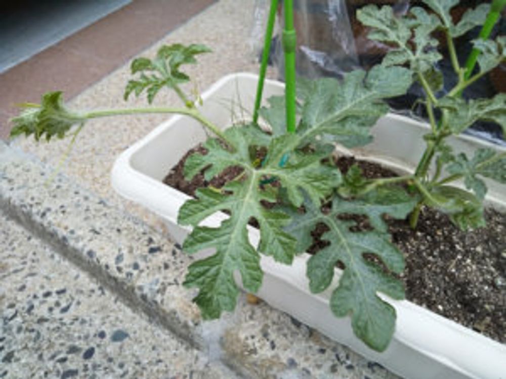 プランター栽培しているスイカは、土の表面が乾燥してたらたっぷり水やりをします。気温が高い夏場は、1日2回朝と夕方に水やりしてください。
