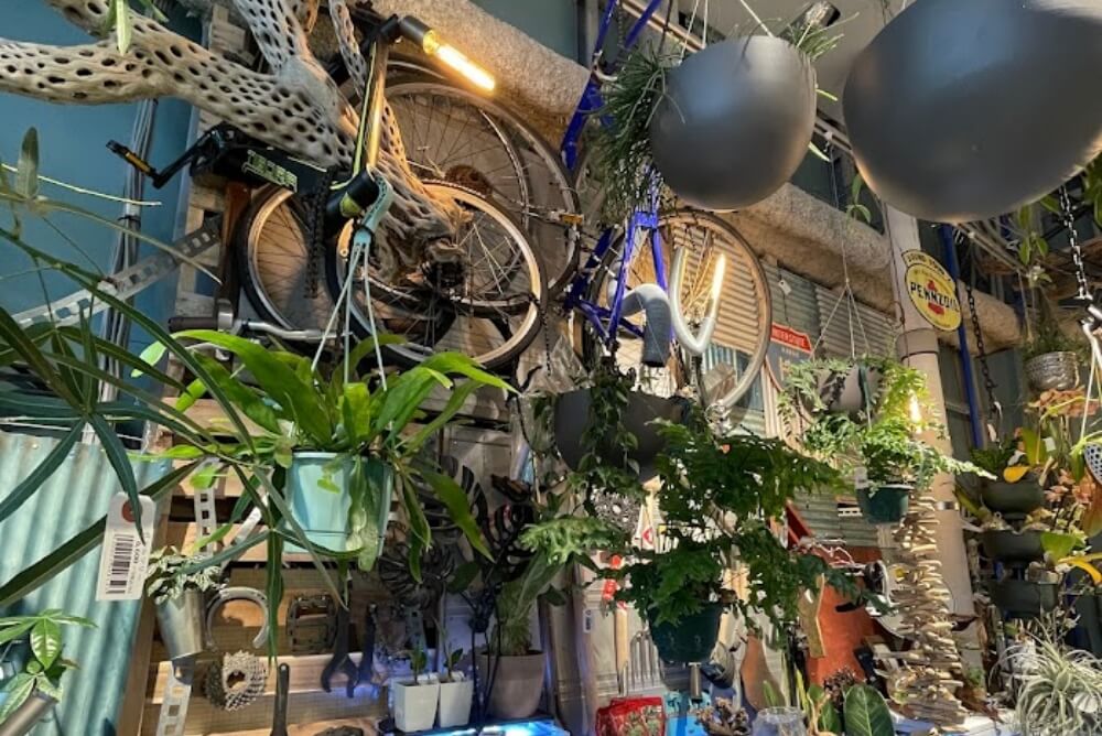 店内をぐるりと見渡すと、自転車の廃材やサボテンの骨を利用したダイナミックなディスプレイや、自然素材を原料とするレンガ調のブロック(レンブロック)を取り入れた壁面など個性的なものばかり。