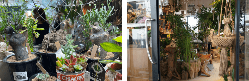 店内に並ぶ観葉植物はローメンテナンスで育つものを中心にセレクトしています。初心者でも選びやすいのも嬉しいですね♪詳しい育て方や質問などは、スタッフが丁寧にアドバイスしてくれるので安心です。