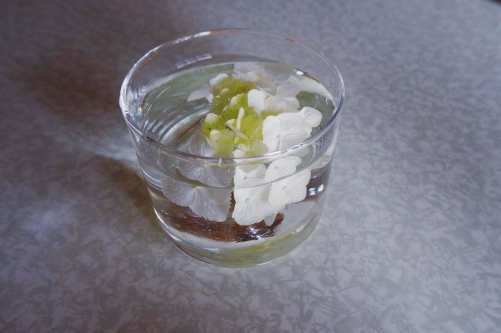 房からカットした紫陽花のお花を水盤に浮かべて鑑賞するのも良いですね。