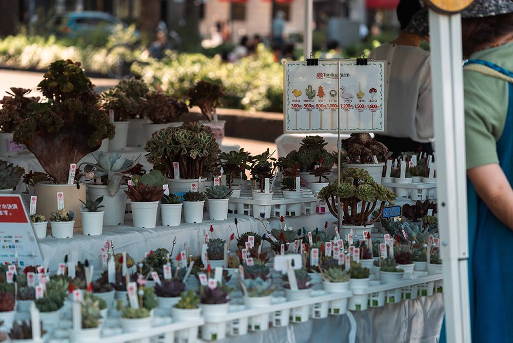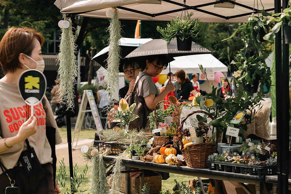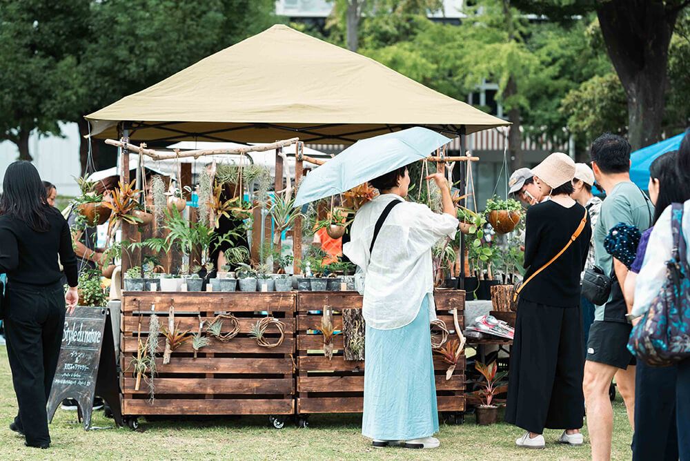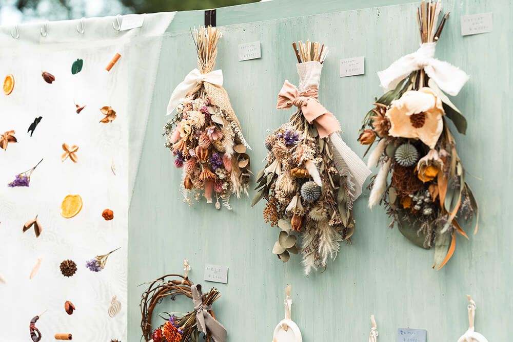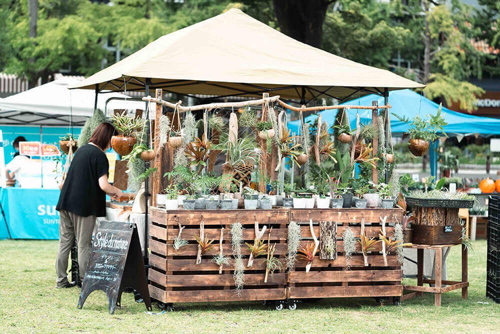 今回のマルシェには、多肉植物をはじめ、秋空に映えるドライフラワーや生花、こだわりの観葉植物、ハンドメイドのボタニカル雑貨やアクセサリー、花器、培養土・肥料など、約40組もの出店者が全国から集結。