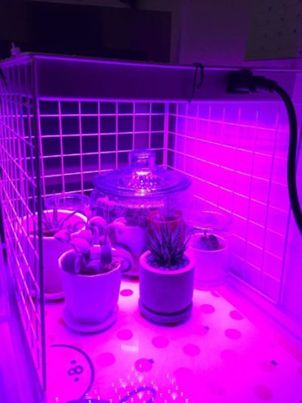 ライトの色はピンクと紫という派手な色ですが、植物に照射することにより光合成を始めます。