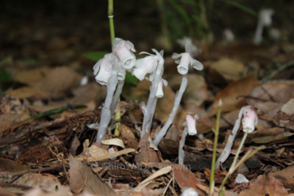 ギンリョウソウは、キノコから養分を得て生育している植物です。
