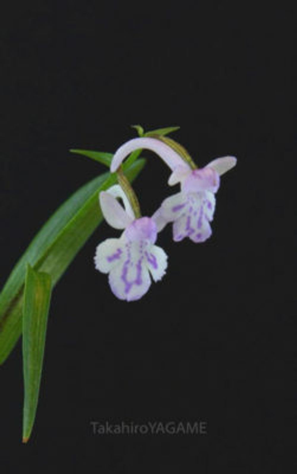 北関東産。純白で唇弁がほとんんど切れ込まない個体。