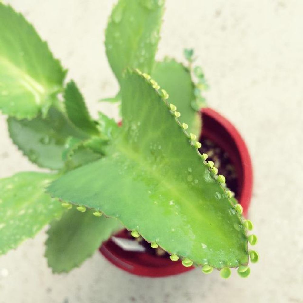 多肉植物の中でも実に簡単で、葉っぱの縁にある小さな葉っぱを土に置くだけで根を張るそうです。