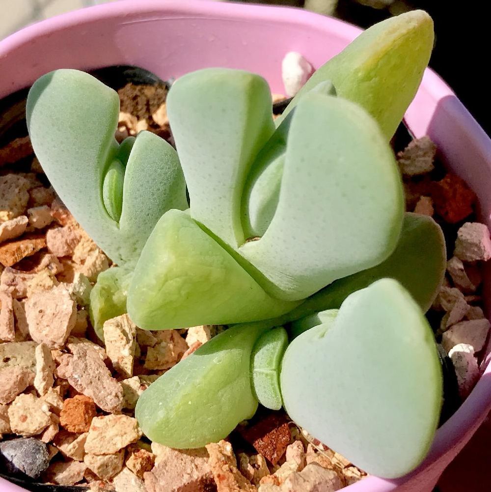 コノフィツムは、コロンとしたそら豆のような見た目と脱皮をするという少し変わった多肉植物ですが、他の多肉植物と比べてとっても綺麗な花を咲かせます。