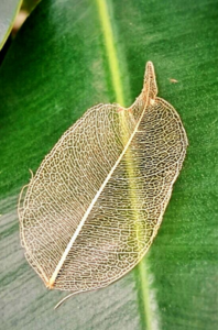 ベンジャミンの葉が水中に沈んでいて、葉肉がすべてなくなった状態だそう。