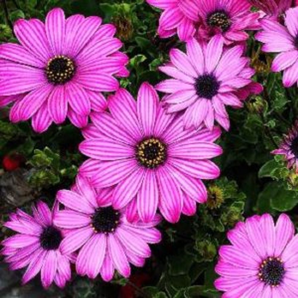 赤やピンク、紫、白の発色のよい花びらが特徴です。