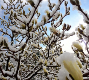 ハクモクレンは花弁が大きくやわらかいので、強い風に当たると、花が吹き飛ばされたり、枝が折れたりしてしまいます。そんな繊細な花木なのですね。