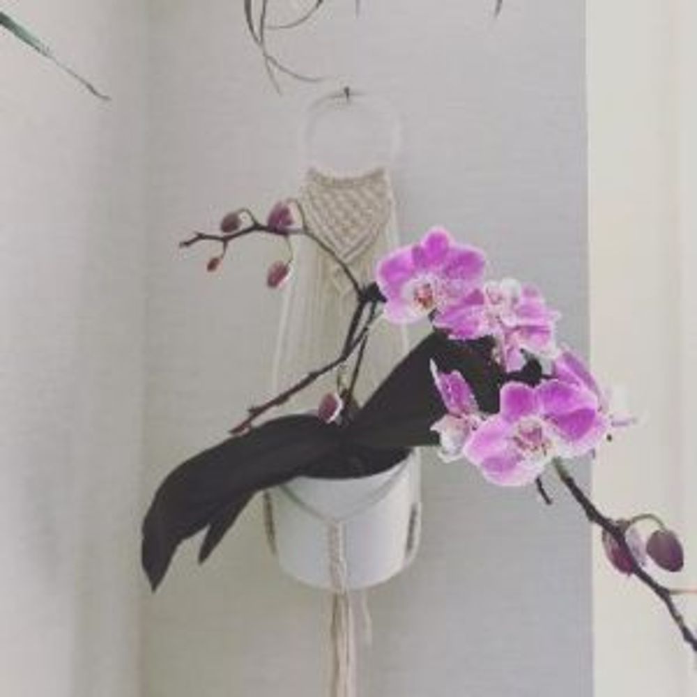 上品なイメージのランをちょっとワイルドに飾っています。ナチュラルに育てた洋ランも印象的。このプラントハンギングも個性的で素敵です!