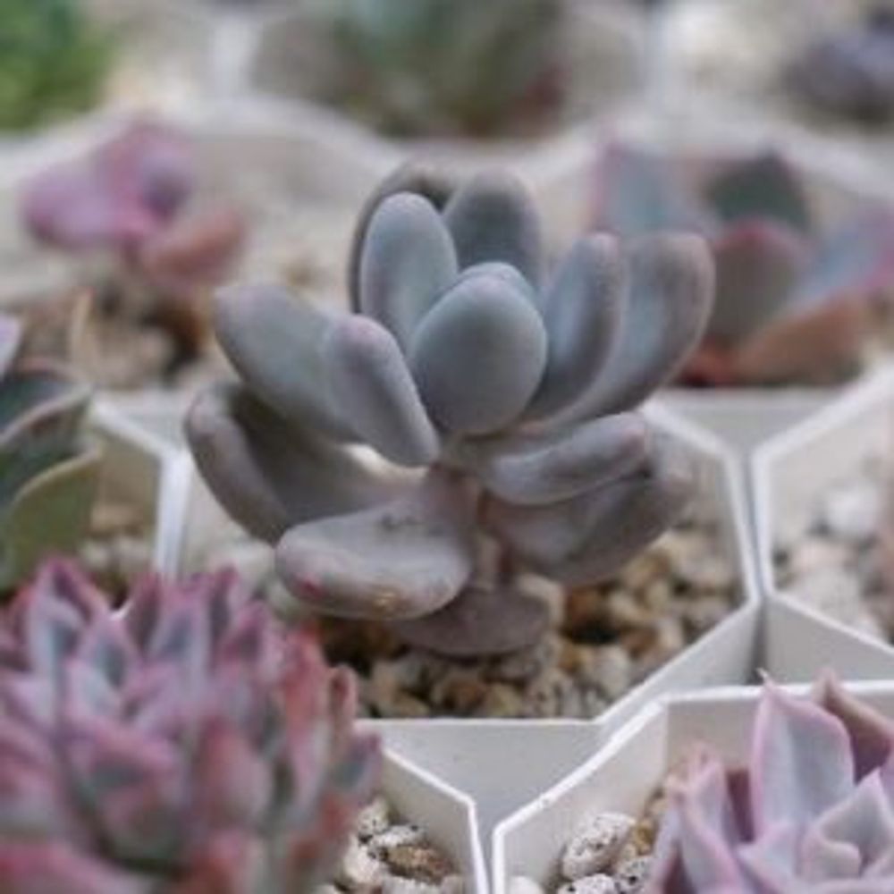 「霜の朝」とかいて「しものあした」と読むこちらの多肉植物は、ぷっくりと肉厚で、とても美しい青白い葉をもちます。