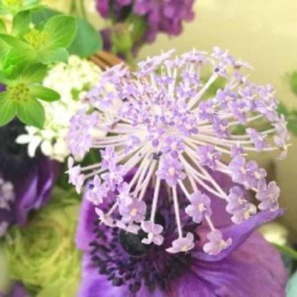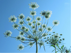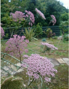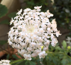 5枚の花びらをもつ小さな花が40個ほど集まり、