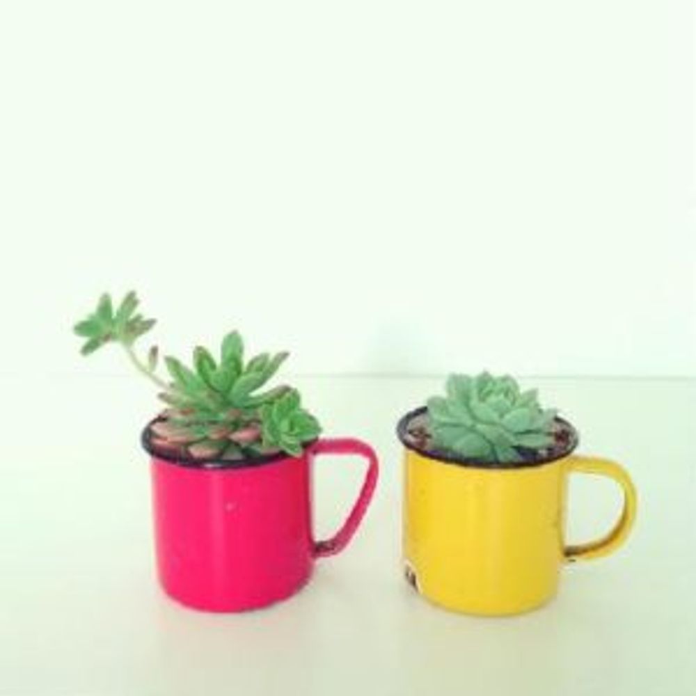 たとえば、使わなくなったマグカップだったり、少しだけ欠けてしまったお気に入りのものを、マグカップ寄せに使ってみてはいかがでしょうか。お部屋に飾って、多肉と一緒に楽しむことができます。