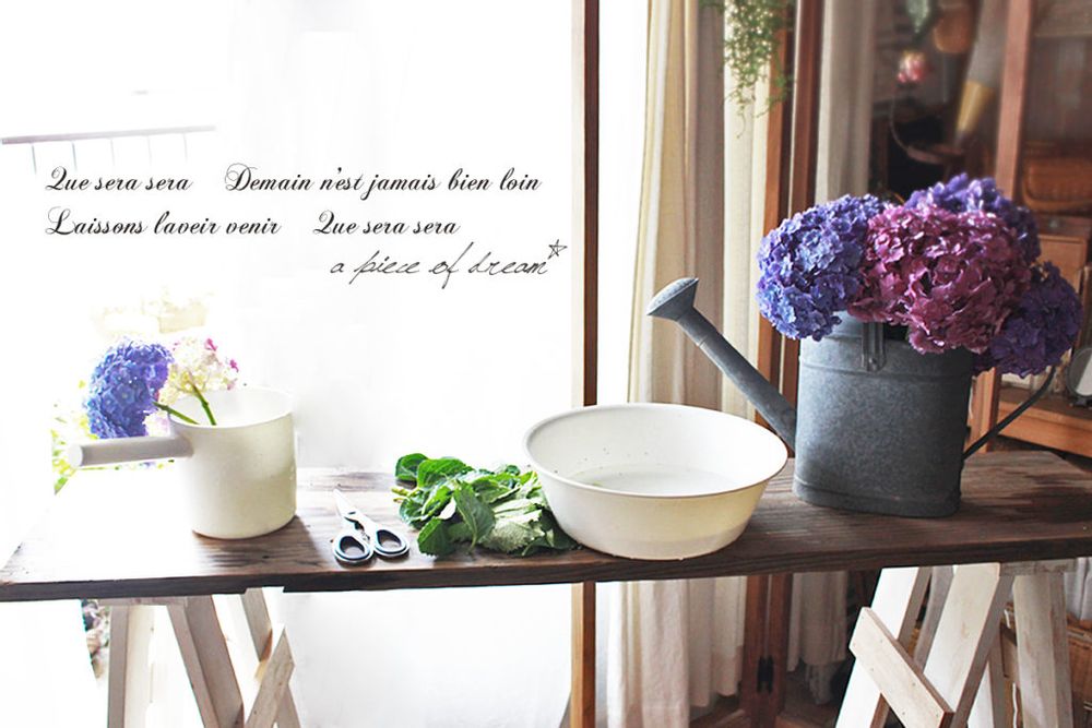 たくさんいただいた紫陽花。少しおすそわけをして。
