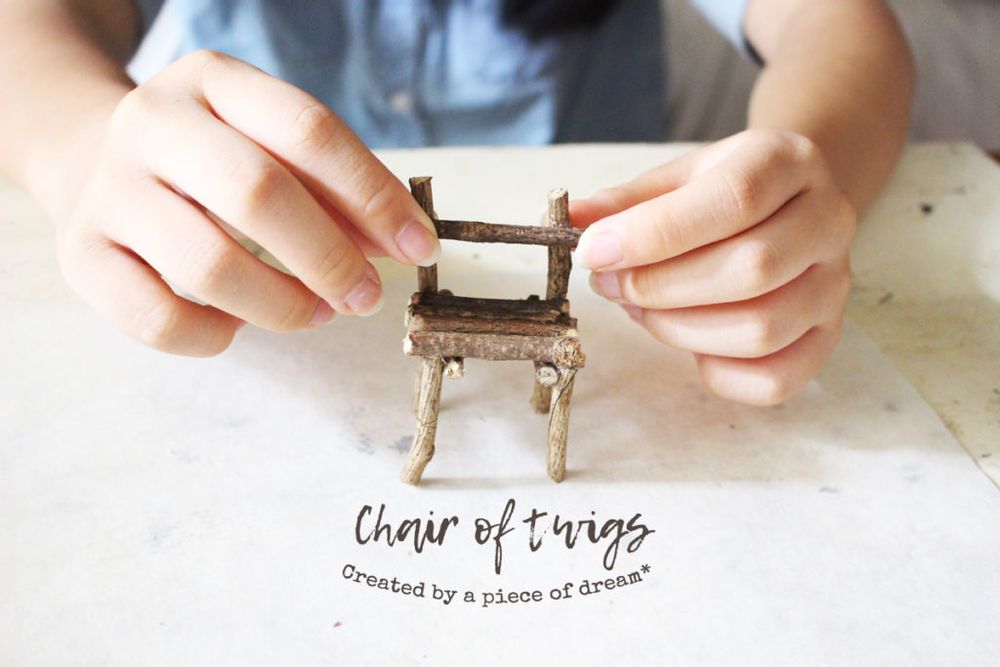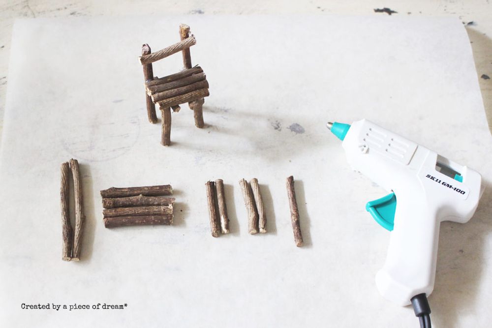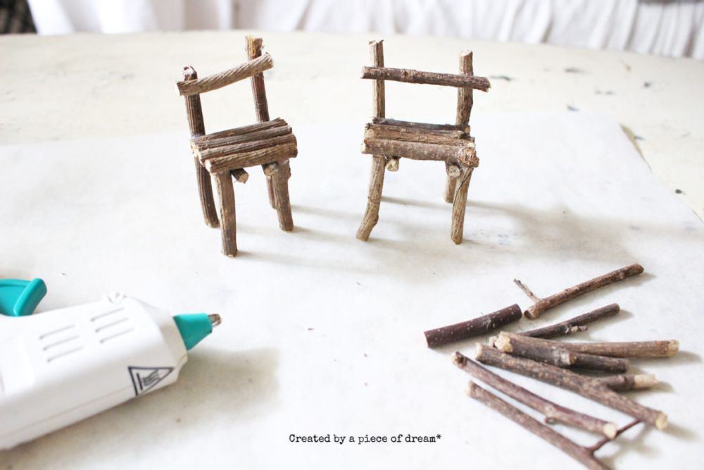 簡単なので「小枝のイス」と「多肉植物のお庭」