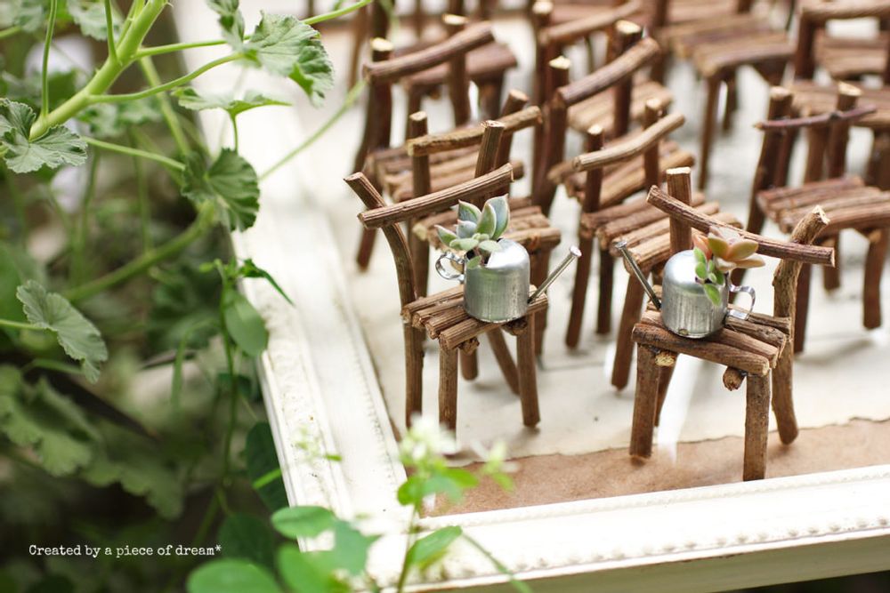 小さな多肉植物のお庭に「小さなイス」があったらとっても可愛いなと思って。
