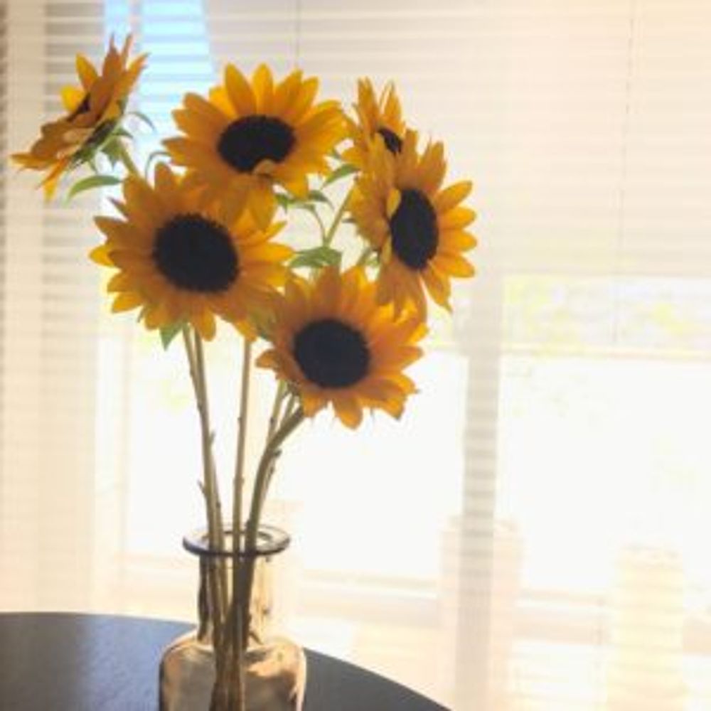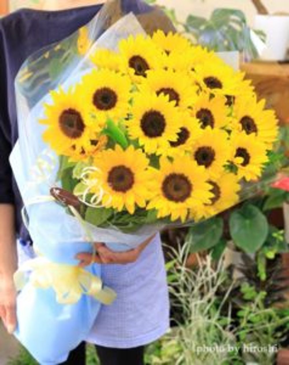 花粉が出ないように改良されているので、テーブルを汚す事がない画期的なひまわり。