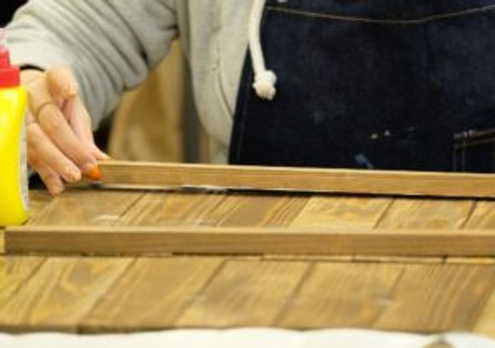 次に、板の裏側にストッパーとなる棒状の木材を付けます。