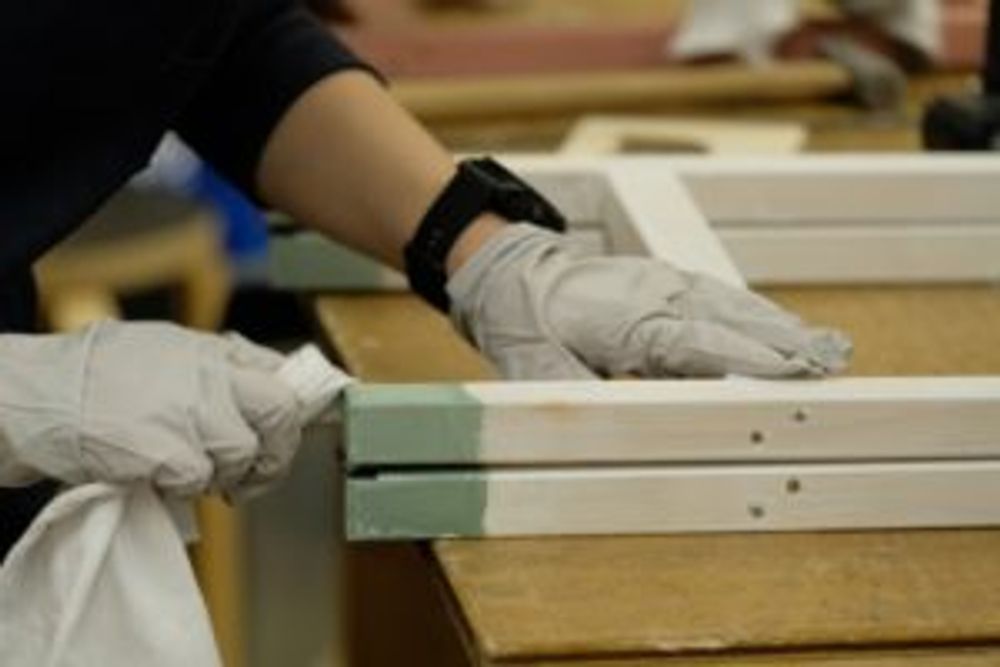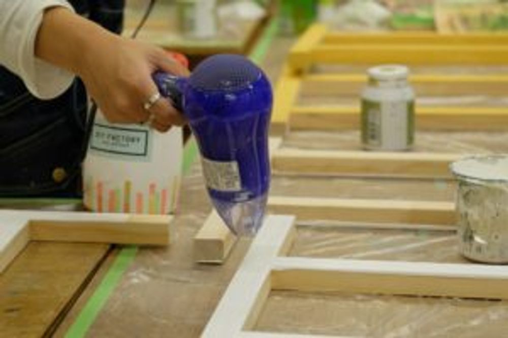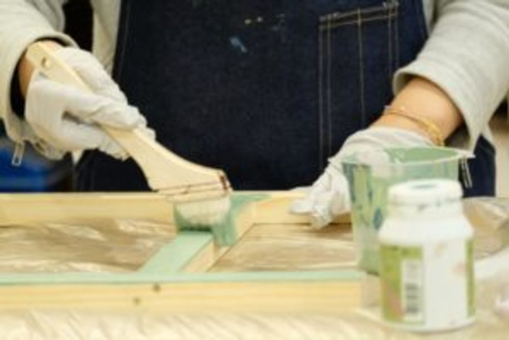 組み立てた脚に好きな色の塗料を塗っていきます。好きな色を選べるのは、なんだかワクワク!