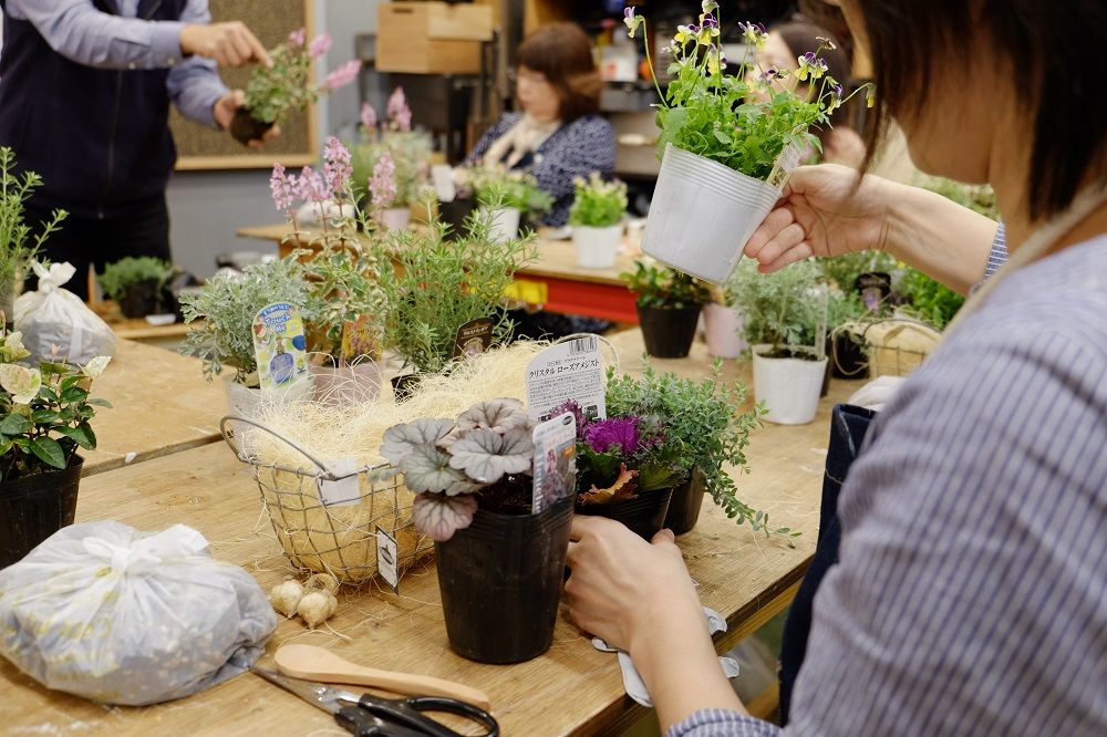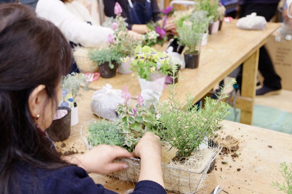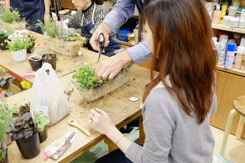 寄せ植えのテクニックのみならず、株が弱らないように間引く方法や、完成数日後のメンテナンス方法など大変有意義な時間を過ごすことが出来ました。