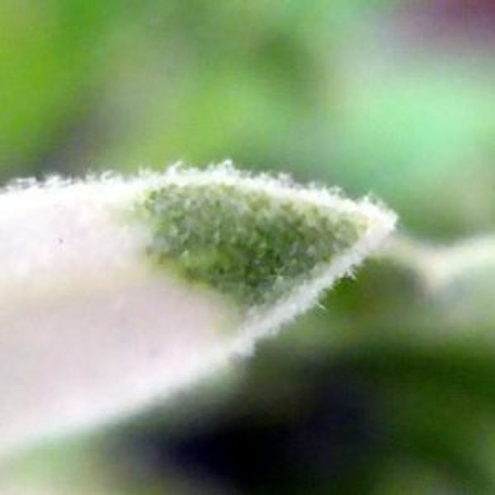 花びらの先端がちょっぴりグリーンになった、爽やかな印象の花。そして、葉っぱや花びらが毛に覆われている、モフモフでちょっと面白い植物です。