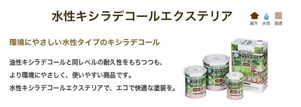 今回はこちらの右側の商品、木材保護塗料 キシラデコール 水性エクステリアをモニターしていただきました。