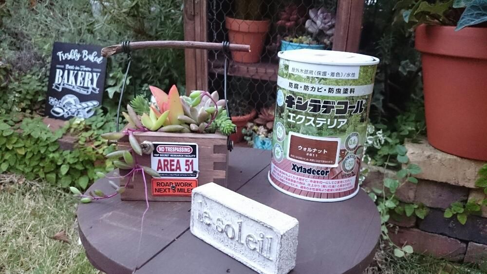 キシラデコールの特徴を活かし、花台や多肉プランターBOXをDIYされたのはいいひらめきですね!