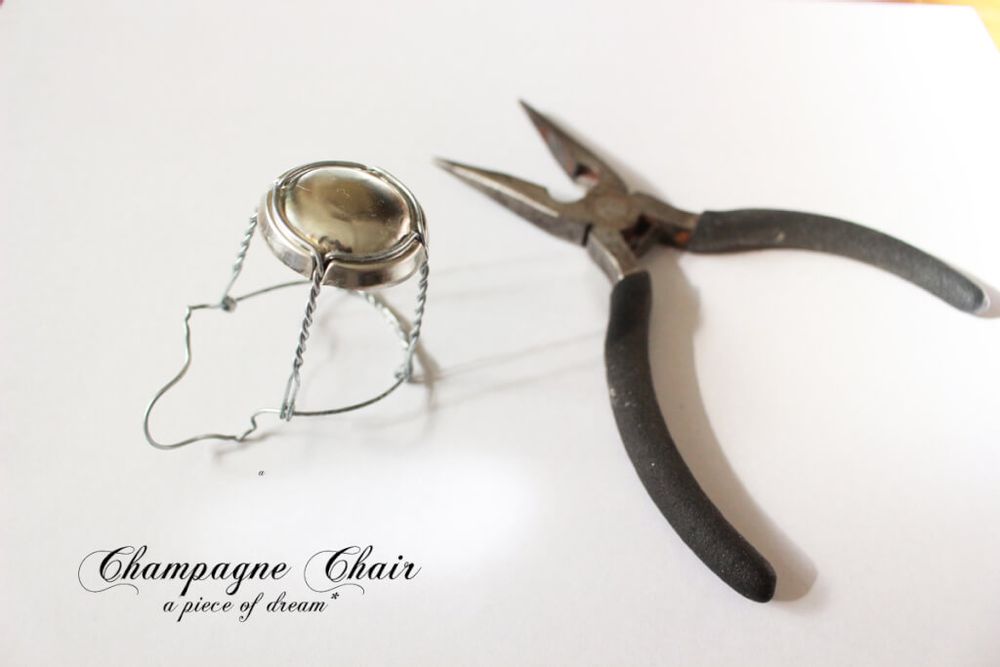 シャンパンのワイヤーつきのフタ。そして 、ペンチ。