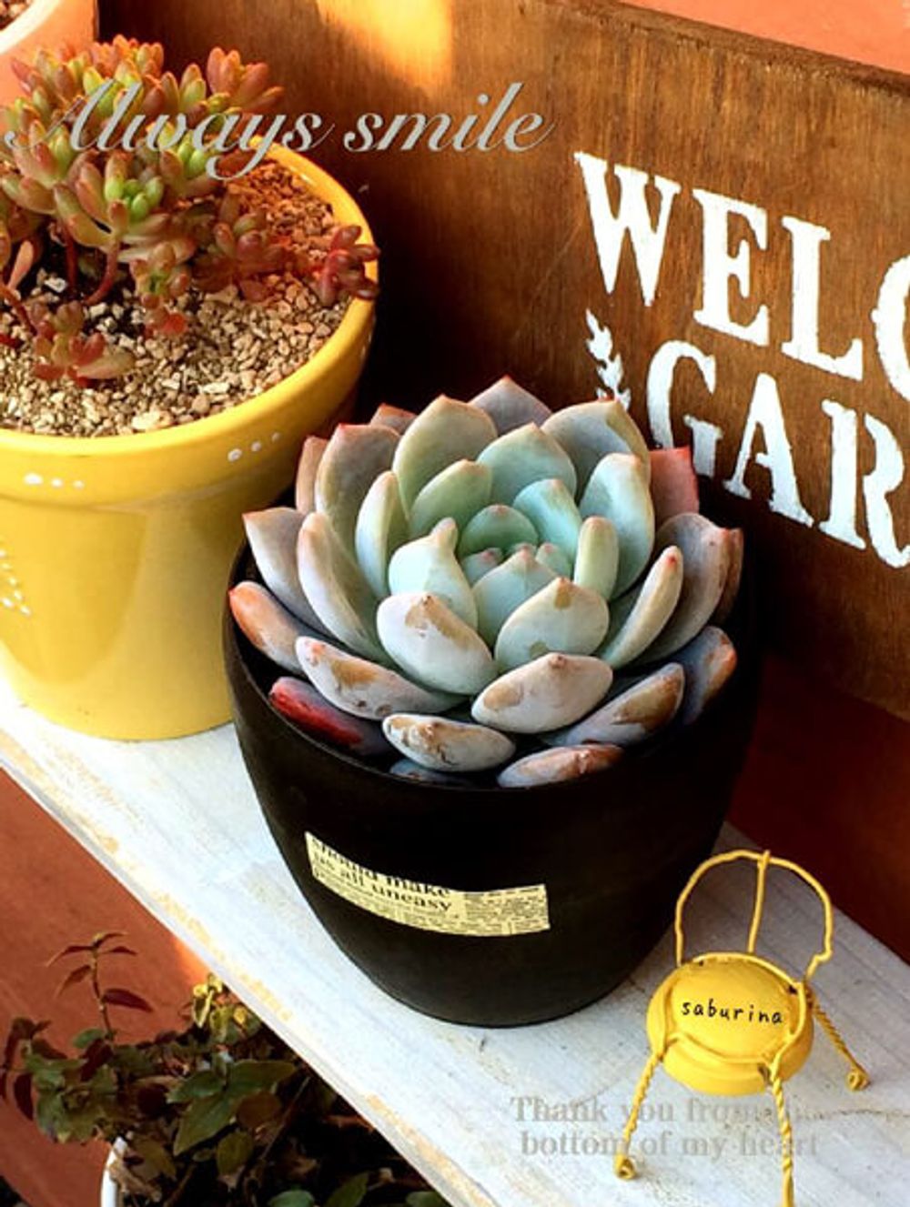 GreenSnapでは黄色にペイントして作っている方もいらっしゃいました。多肉との相性もバッチリとっても素敵ですよね。文字もカワイイ~ッ。