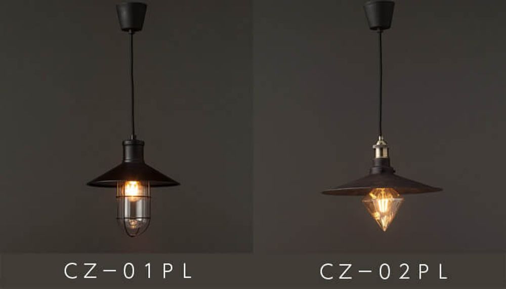 広がるつばが懐かしさを感じさせる、スチール製のシェードです。シェード部分は錆びた質感を表現。使い込まれた風合いがアンティークのような雰囲気を演出します。ペンダントライト CZ-03PL