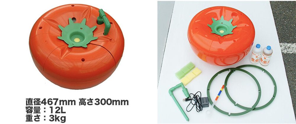 ■付属品:ハイポニカ液体肥料(500ml)・果菜用培地(4セット)・栽培鉢(1個)・支柱支持枠(2個)・取扱説明書・栽培のしおり