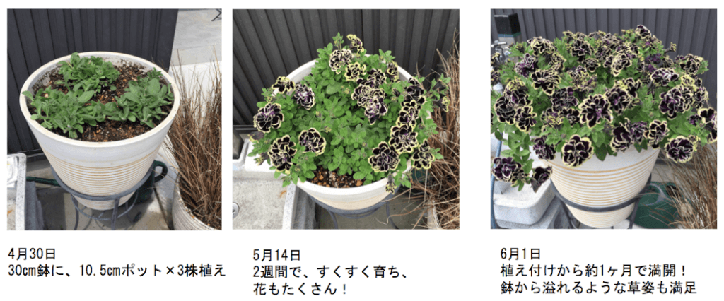 植えてから約2週間あまりですくすく育ち、植え付けから約1ヶ月で満開になるという早さで、