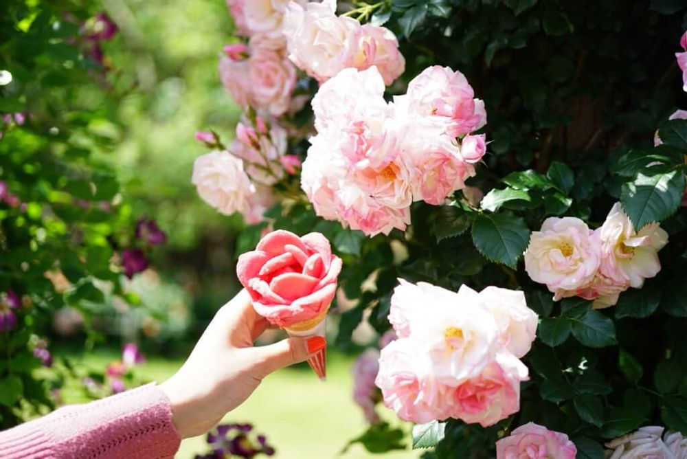 「ローズフフェスティバル2018」期間内の週末限定で、ワゴン型ジェラート屋さんも開店!バラ型のジェラートやローズフレーバーなど多彩なメニューを展開中!園内散策の合間にジェラートでひと休みして。