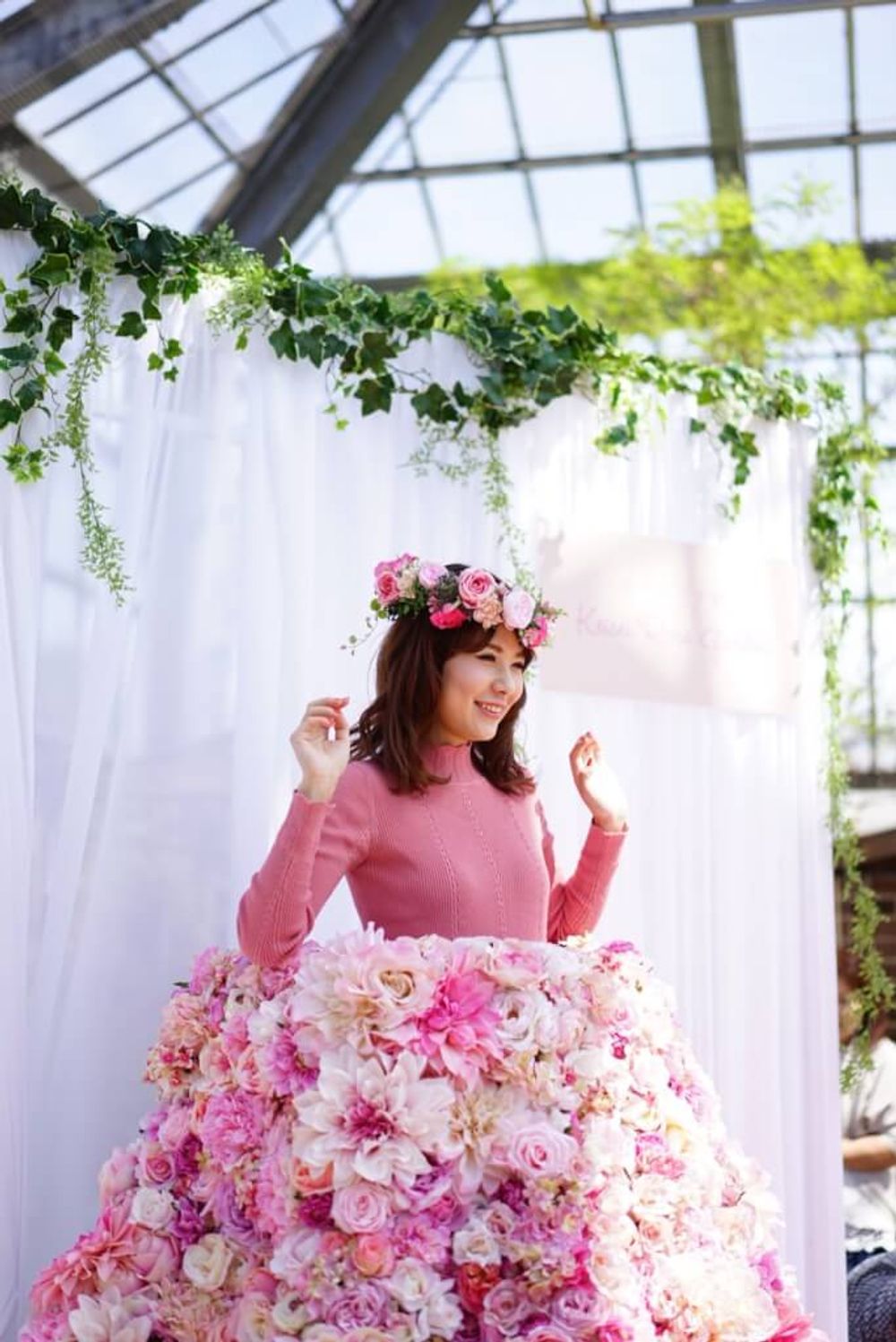 今回は新しくバラでできたドレス型のフォトスポットも登場!花冠をかぶって、憧れのドレス姿を叶えよう