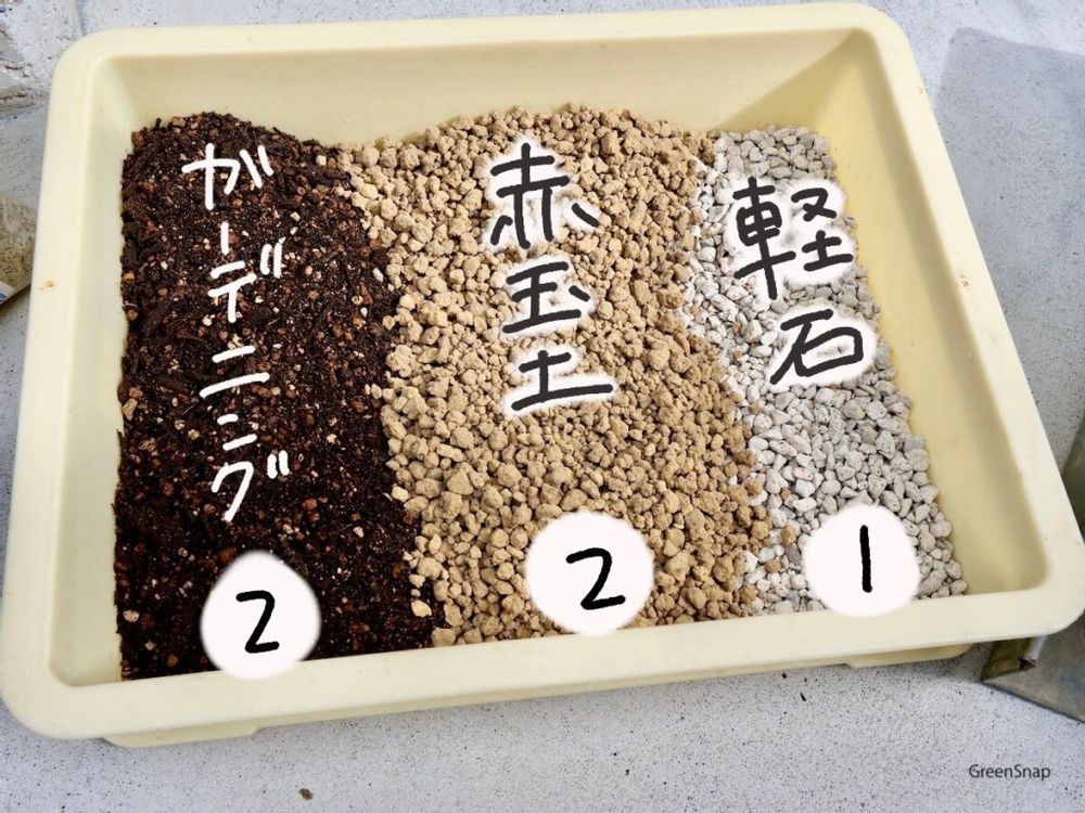 赤玉土4:鹿沼土 2:日向土1:腐葉土2.5:もみ殻くん炭0.5