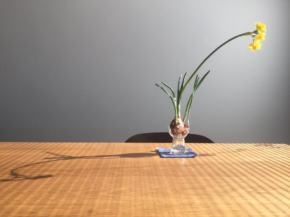 春を告げる草花として、昔から親しまれている「スイセン」。茎がまっすぐのびる凛とした姿が特徴的で、開花するととてもよい香りがします。スイセンの場合は、複数の球根を大きめのガラスで育てると、ボリュームが出てステキです。