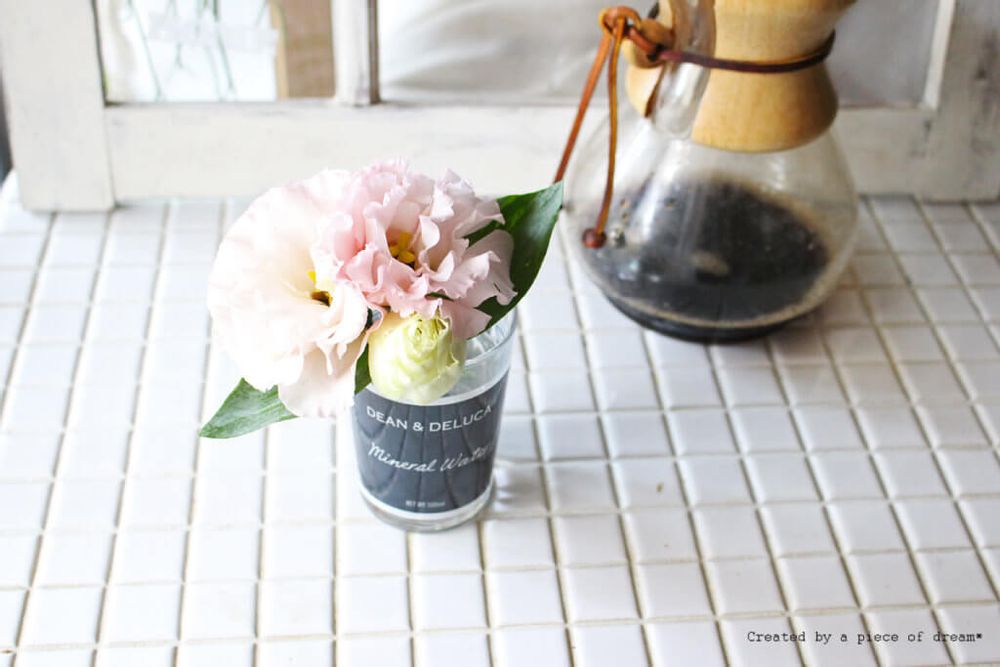 グレーのラベルに似あう「ピンクのトルコキョウ」を飾ってみました。かわいくってお気に入りです~。