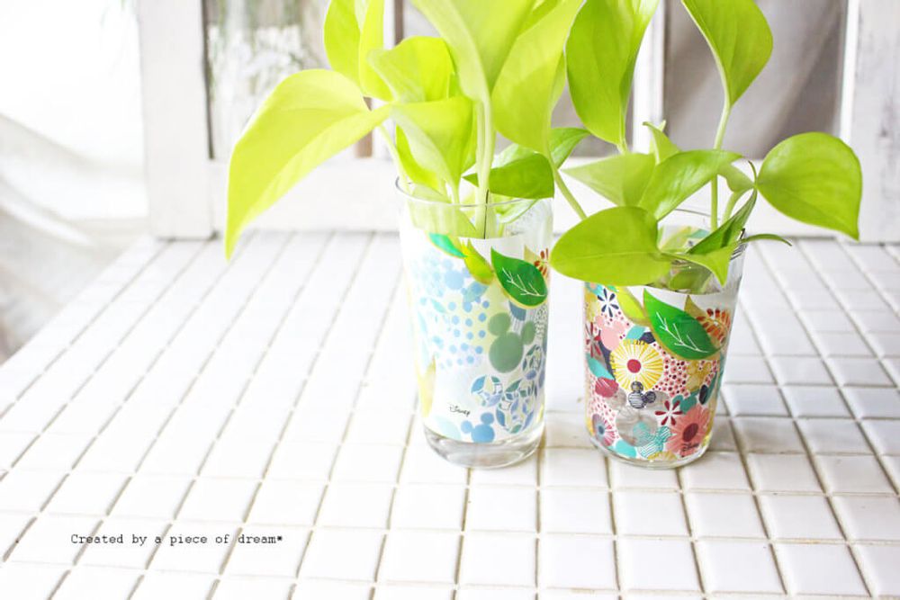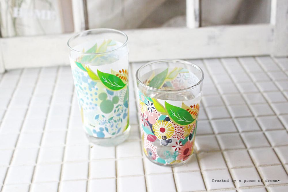 グラスやガラス瓶に接着剤を貼らないので、はずすことも簡単。ラベルコレクションしても素敵! って思います。