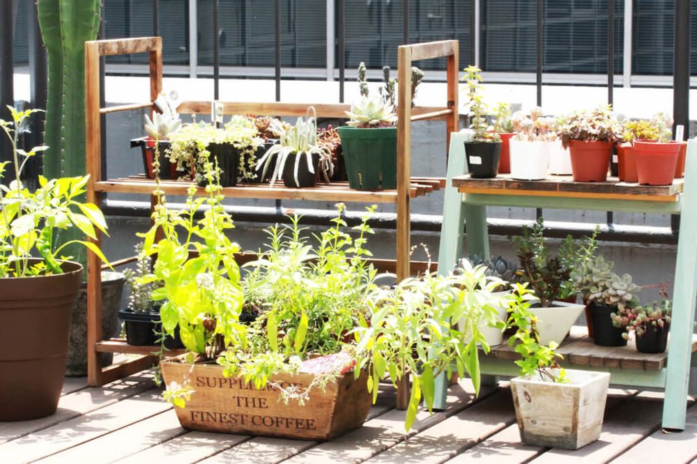 室内側より手すり側の方が風通しがよくなります。棚など利用して床から離して配置がおすすめです。集合住宅のベランダは消防法などのルールとマナーを守ってレイアウトを楽しんでくださいね。