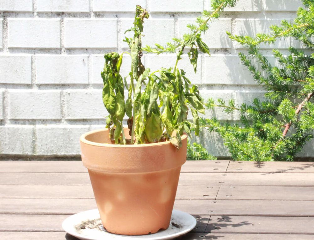鉢に直射日光が当たる環境で水やりをすると、鉢内の水分が温まり植物によくありません。