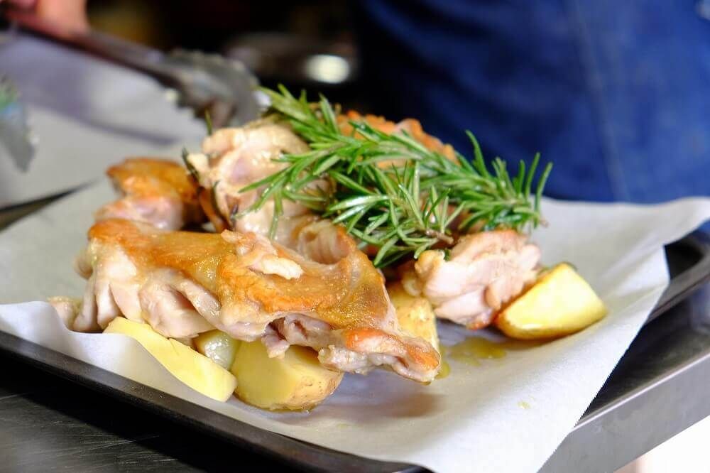 アンジェラが一番お気に入りだったのが、ローズマリーと塩とオリーブオイルにつけたローストチキンでした。びっくりするくらい味がしっかり付いているんです。シンプルな味付けですがハーブの香りが効いて、ソースがなくても大丈夫ですね。